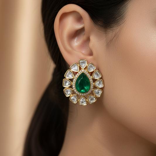 Explore the luxury of our 18kt gold plated anti-tarnish party jewelry handcrafted in India, intended to enhance your appearance with a touch of glamour.