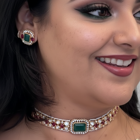 Explore the luxury of our 18kt gold plated anti-tarnish party jewelry handcrafted in India, intended to enhance your appearance with a touch of glamour.