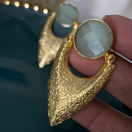 Experience a fusion of timeless charm and contemporary allure. Jewelry made with unique designs on natural quartz stones of different colors and high-quality gold plated inlay work inspired by the Mughal jewelry art