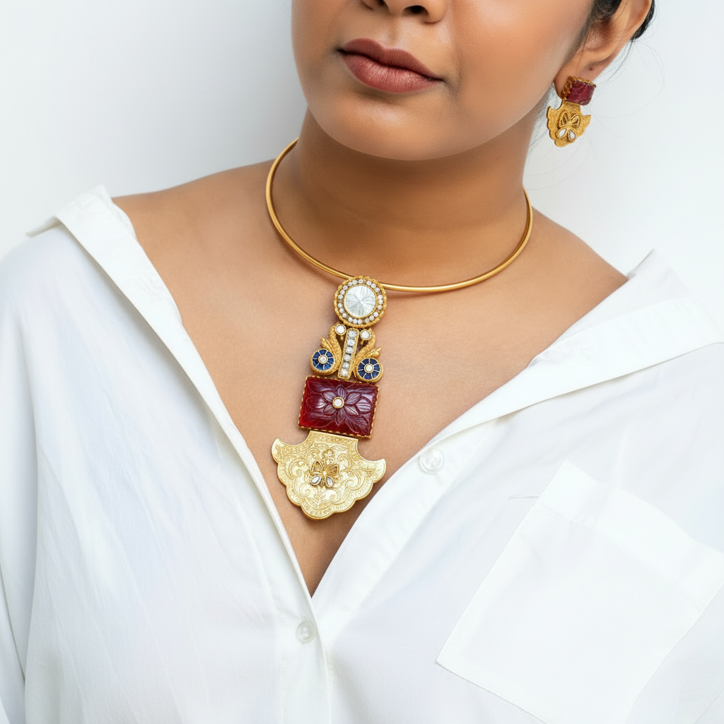 All our handcrafted jewelry are made using semi precious polki and moissanite stones, natural quartz, glass stones, American Diamonds. high quality pearls and kundan which are set in real silver and gold foil..